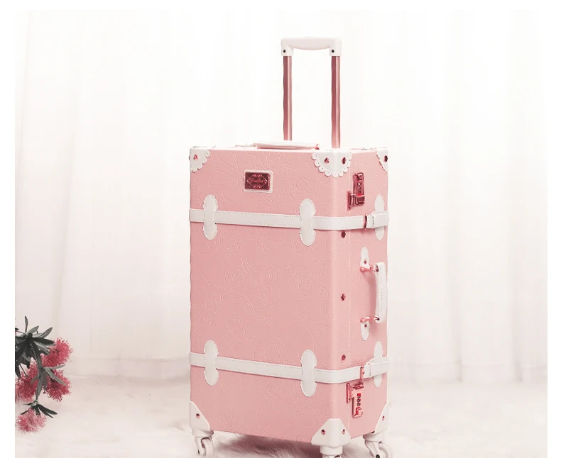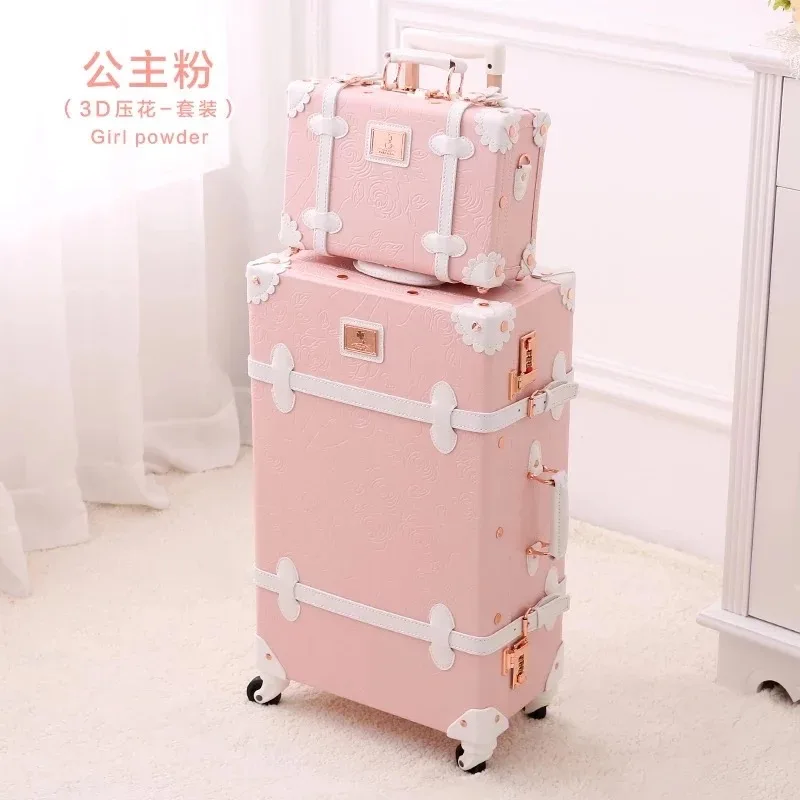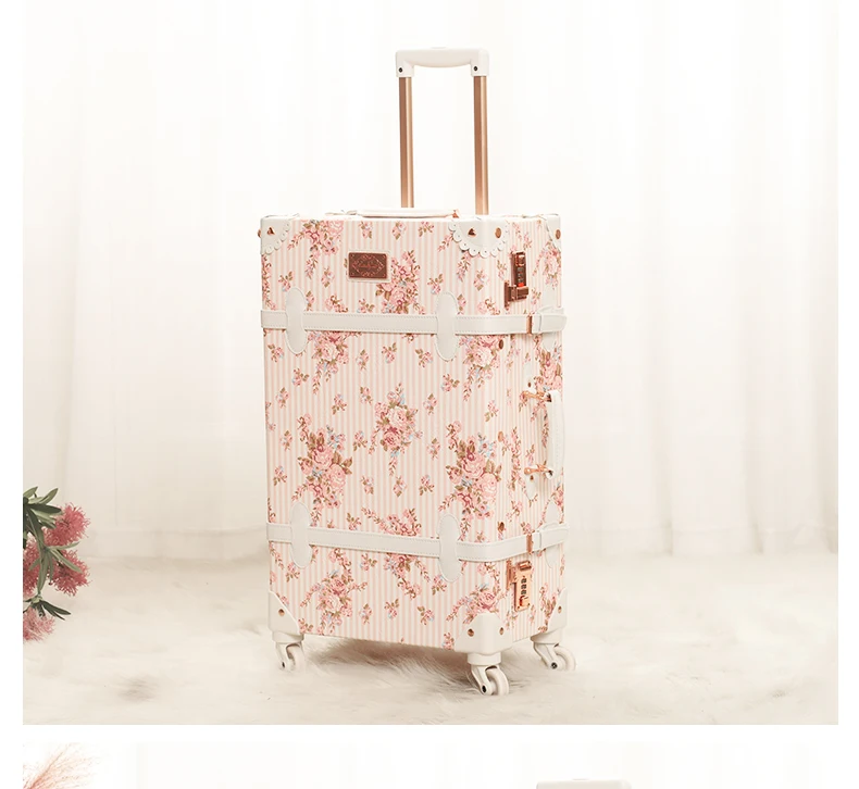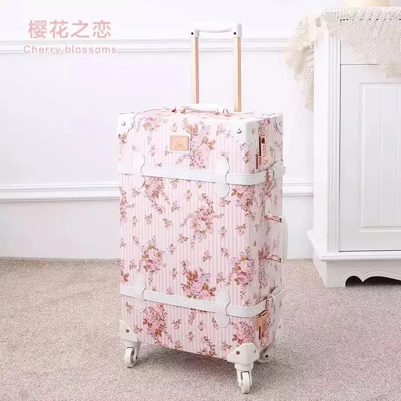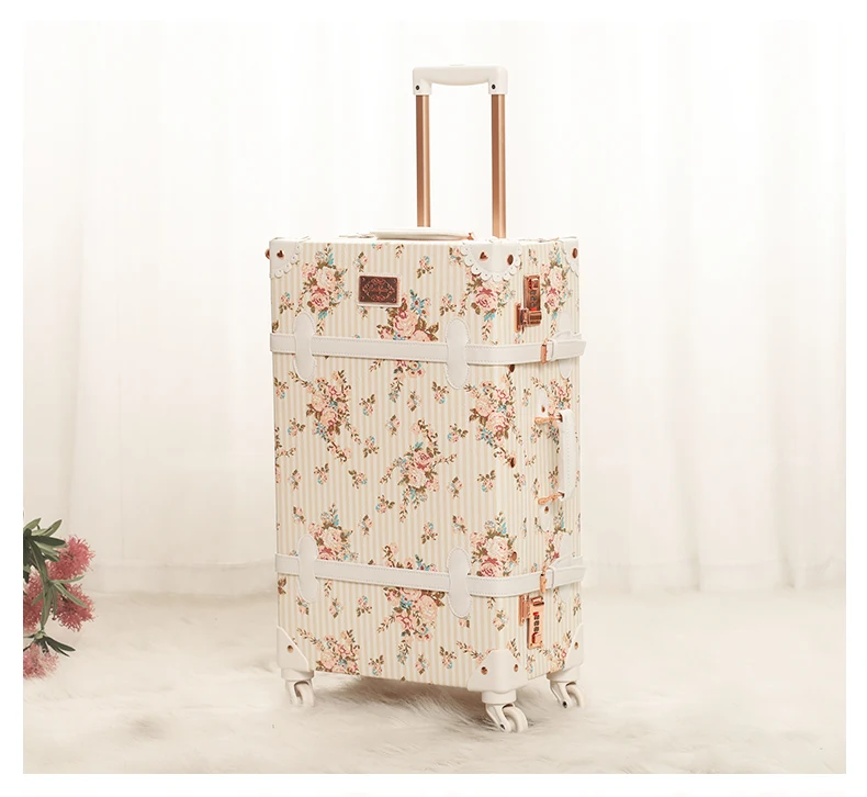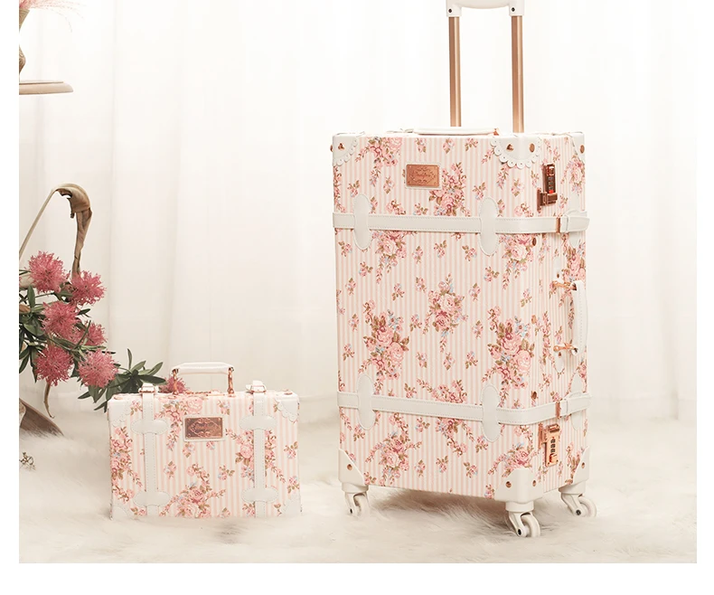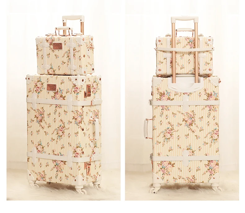 Flower 2PCS/SET Vintage luxury PU Travel Luggage with handbag Women Retro Trolley Suitcase Bag girls cosmetic makeup valise