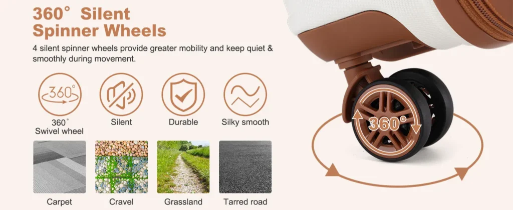 Maneuverability: Features four spinner wheels allowing the suitcase to be moved in all directions, enormously easing handling.