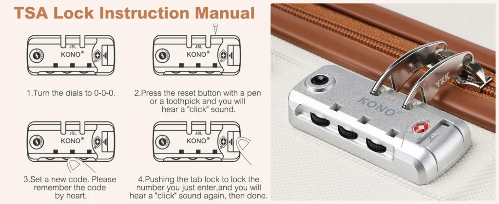 Security: Each case is equipped with an integrated TSA number lock that allows airport security personnel to open luggage without forcibly damaging the suitcase.