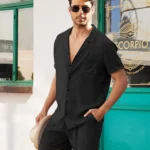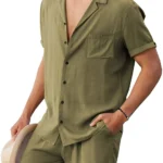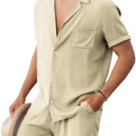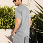 The set features a Cotton and Linen Cardigan Shirt, designed with a loose fit and short sleeves for maximum ventilation, and coordinating Shorts. The use of quality linen and cotton ensures the suit is not only incredibly comfortable but carries a naturally textured, relaxed drape. It’s the ultimate choice for those who demand a commanding yet relaxed presence in their leisurewear, perfect for resort holidays, beach outings, or elevated everyday casual wear.