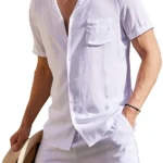 Design: Cardigan Shirt style with short sleeves for a modern, relaxed fit.