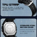 Durability: Features S-style Shock resistance and a Shockproof build for maximum protection against impacts and vibrations. Functionality: Precise Digital display complemented by a dedicated Stopwatch function.Performance: Reliable Waterproof rating, suitable for use in wet conditions and water sports.Aesthetic: Fashion-forward Military Sports Watch design for a powerful, masculine presence.